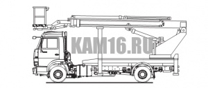 Вышка телескопическая смонтирована на шасси автомобиля КАМАЗ-43114. С помощью болтовых соединений к шасси автомобиля крепится основание опорное с выдвижными опорами, которое обеспечивает устойчивость вышки при работе. На опорном основании расположена опора, к которой шарнирно крепится комплект стрел с люлькой и подъемником и два гидроцилиндра подъема стрелы.