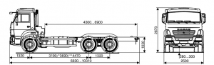 Шасси 6*4, длина рамы 5 970 мм, межосевое растояние мм, грузоподъемность 12 тонн